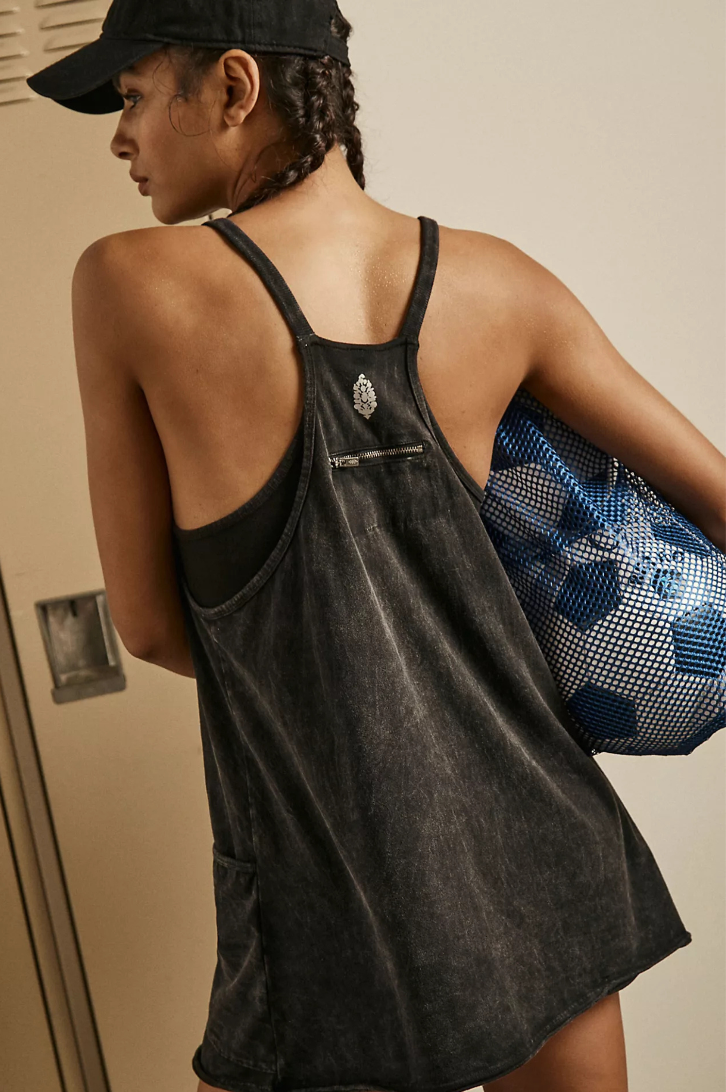 • A fun addition to our Hot Shot collection, this soft dress is featured in a mini-length and lightweight fabrication with oversized patch pockets and built-in shorts.
