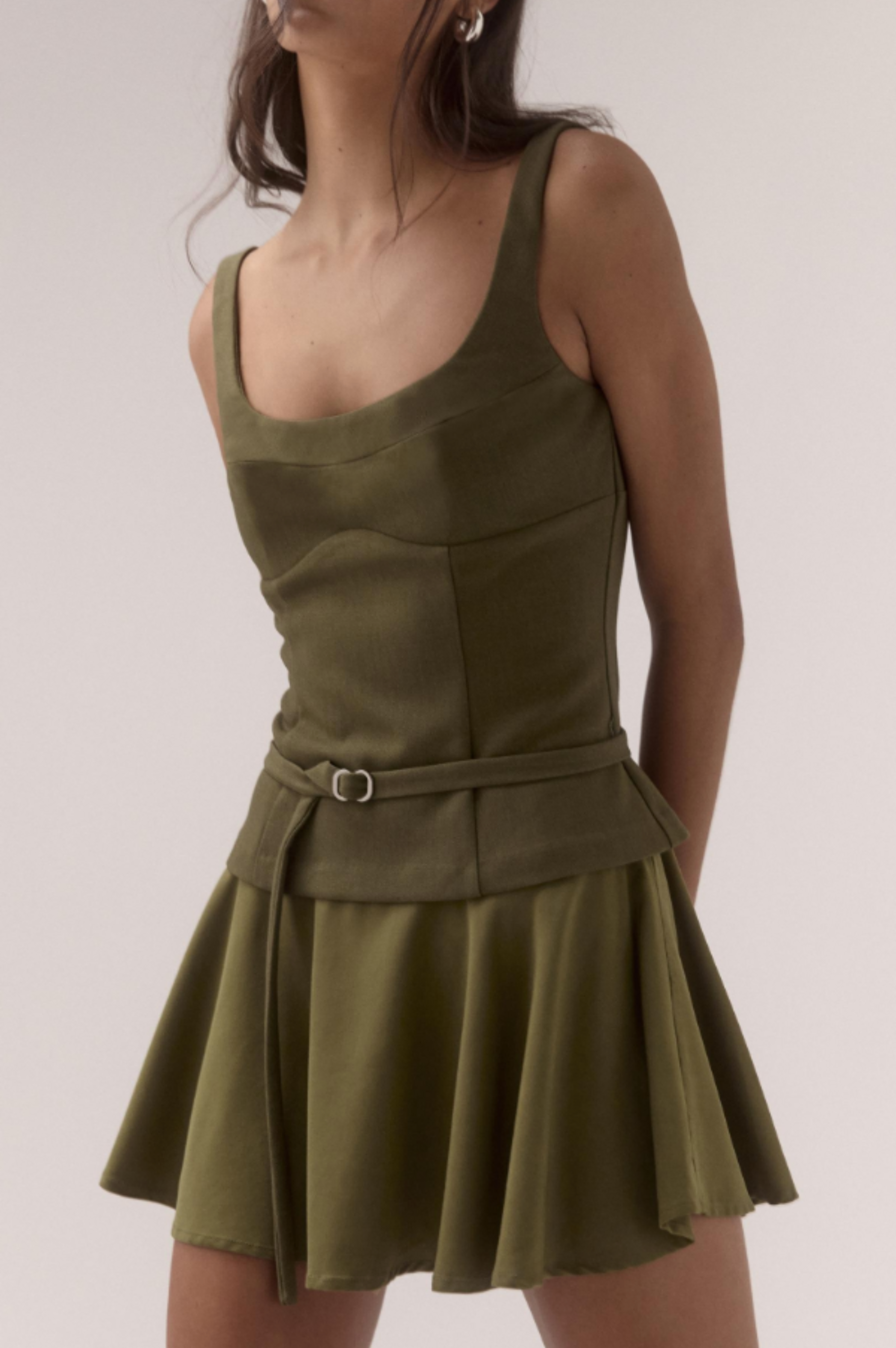 • Effortlessly chic, the Demi Mini Dress features a flattering pleated skirt and a removable belt for versatile styling. Perfect for both polished days and playful nights out.
