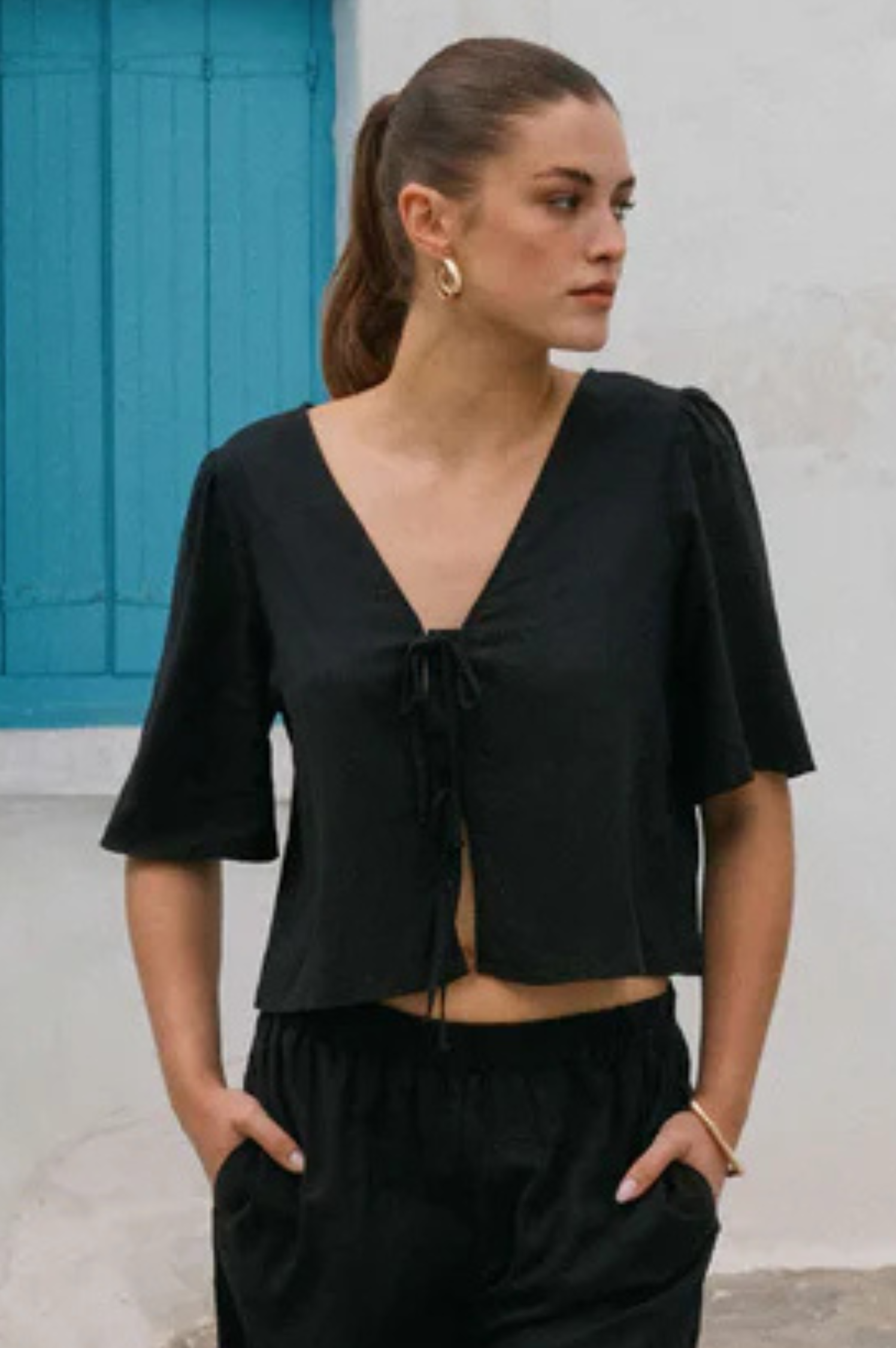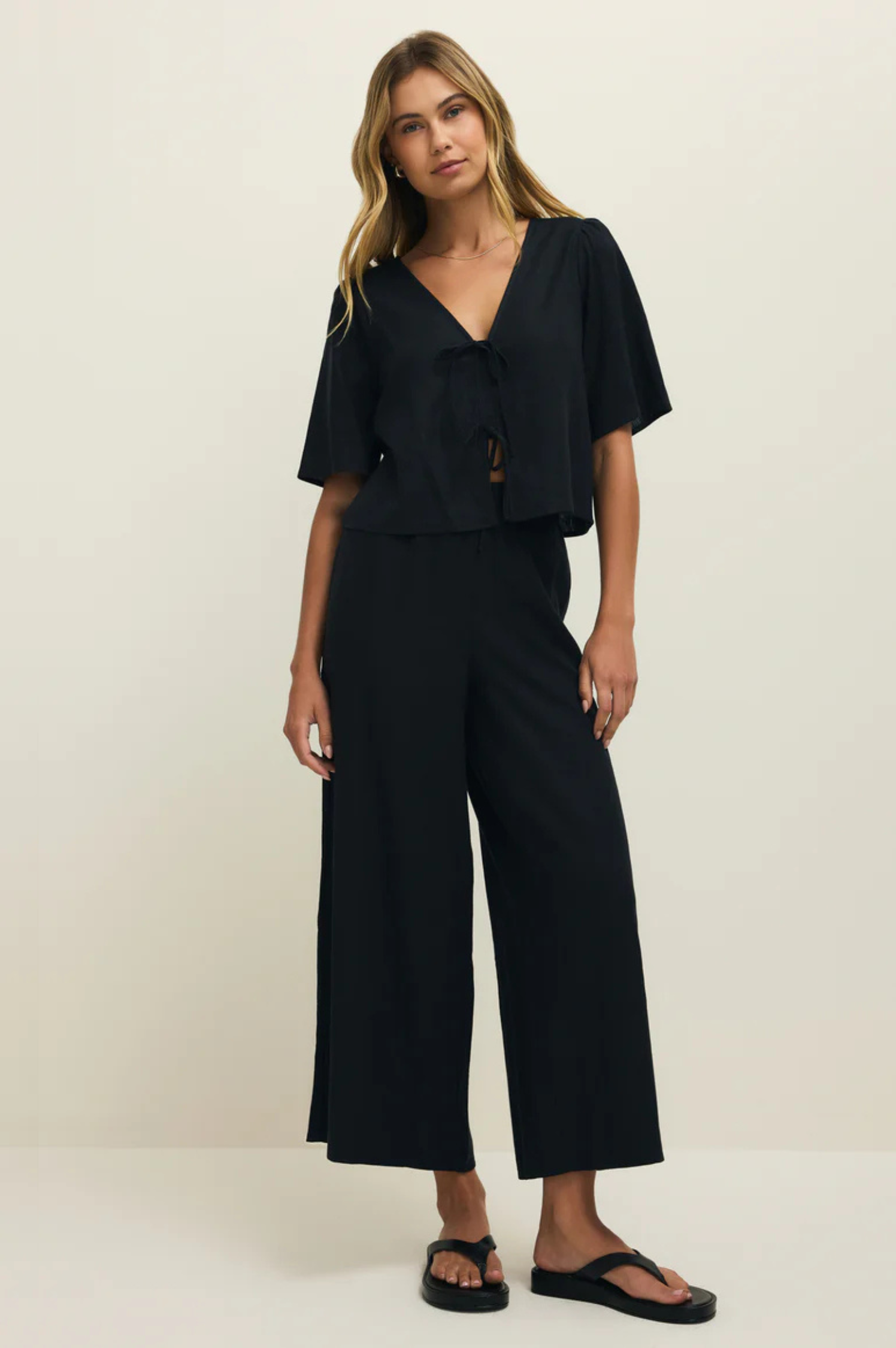 • The La Belle Linen Top is an instant favorite for those days when you want to look effortlessly feminine and perfectly put-together. Crafted from a soft, washed linen blend, it features a flattering relaxed fit and a sweet tie-front detail that adds just the right amount of charm. We’ve even included a modesty placket for easy coverage, making it a piece you can truly wear with confidence. Whether you're dressing it up with matching Scout Linen Pant for a coastal dinner or keeping it casual with your favorite denim, this top has that "elevated everyday" energy we’re always looking for.