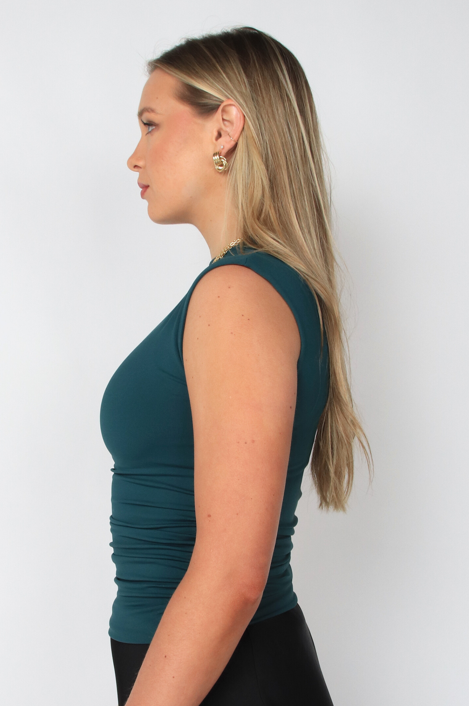 • The ruched Yve Top combines a sleek silhouette with flattering ruching detail, making it a chic choice for day or night. Effortlessly versatile, it pairs perfectly with everything from tailored trousers to denim.