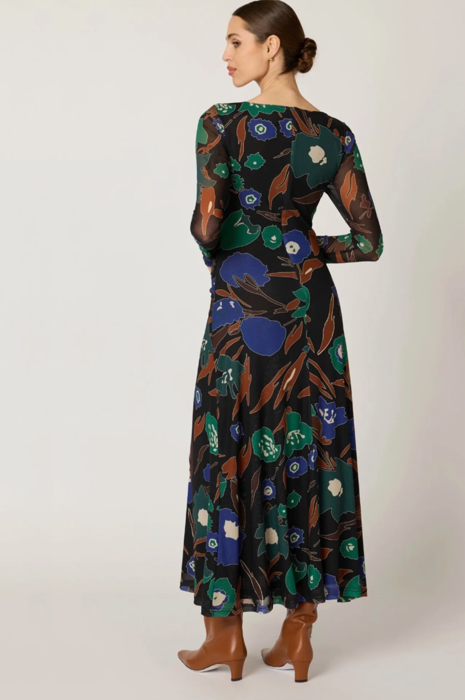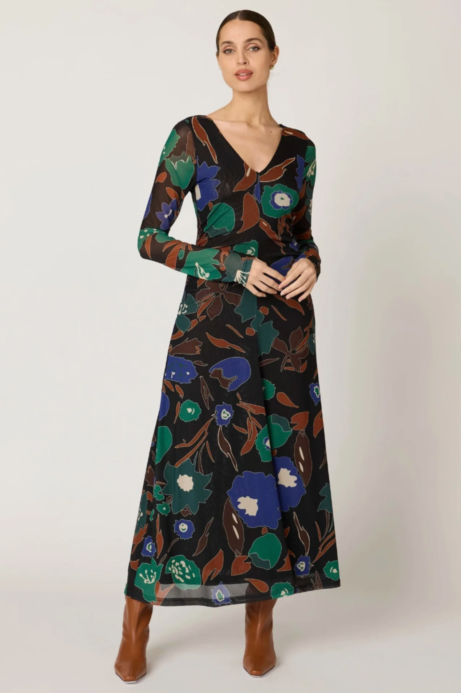 • Ethically handmade in India from 88% recycled nylon and 12% elastane, the Halsey Ankle Dress is a sustainably crafted statement piece made to stand out. Designed with a relaxed A-line silhouette, this ankle-length mesh dress showcases a hand-painted print that feels both artistic and unique. Effortlessly elegant and chic, it’s the perfect style to elevate any fall occasion.