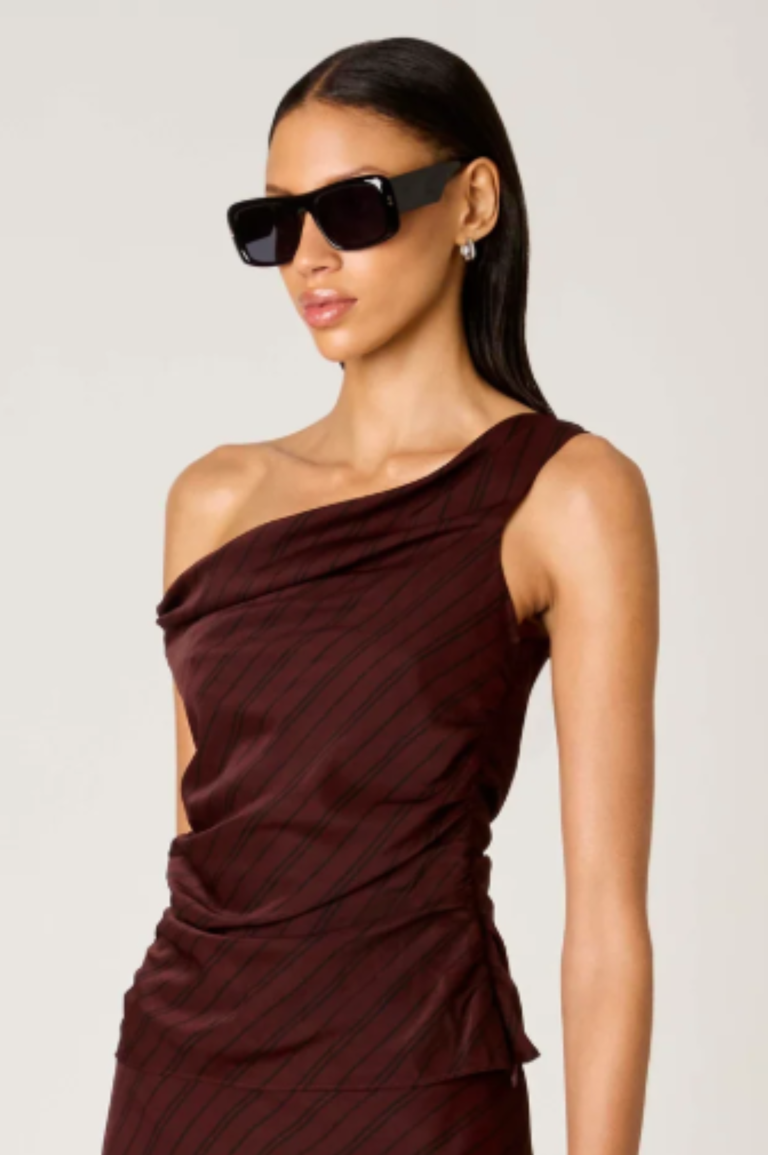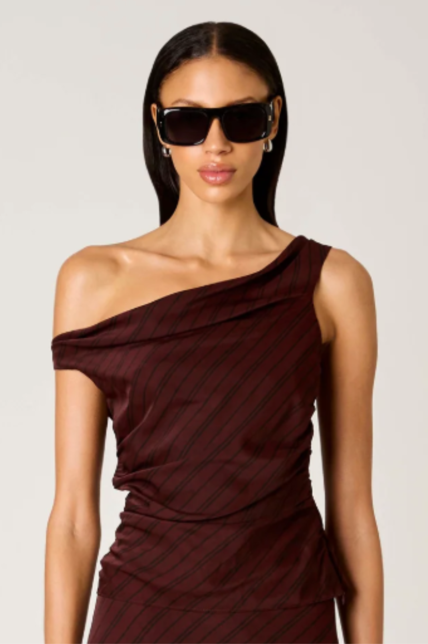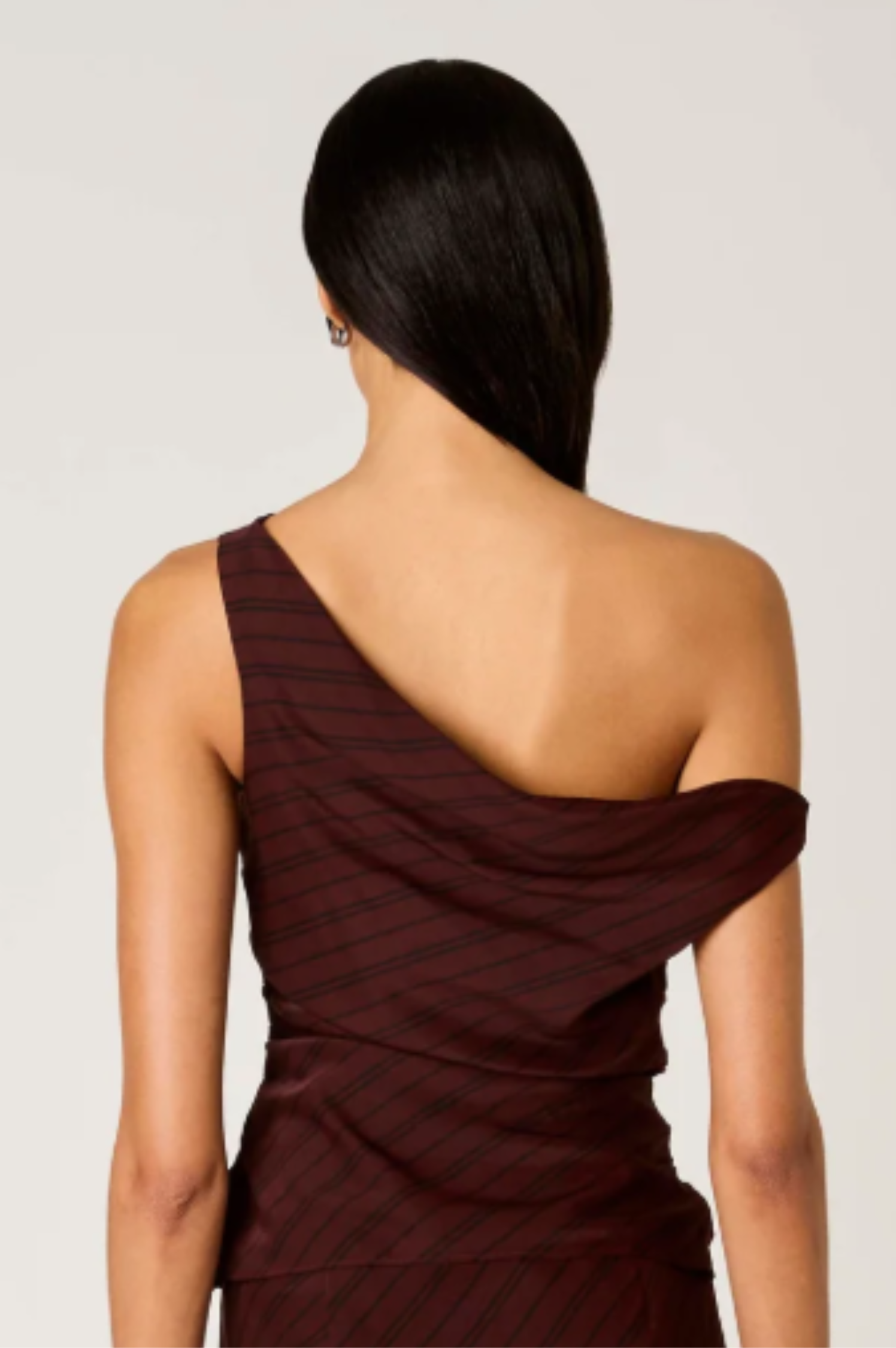 • A chic asymmetric neckline sets the tone for the Benedict Top’s sculptural appeal. Designed in a fitted silhouette with soft gathering through the waist, it’s finished with a draped fold-over detail that brings dimension to the one-shoulder shape. The straight hem sits at the high hip, and a hidden side zipper ensures a smooth fit. Perfectly paired with the Ravello Skirt.