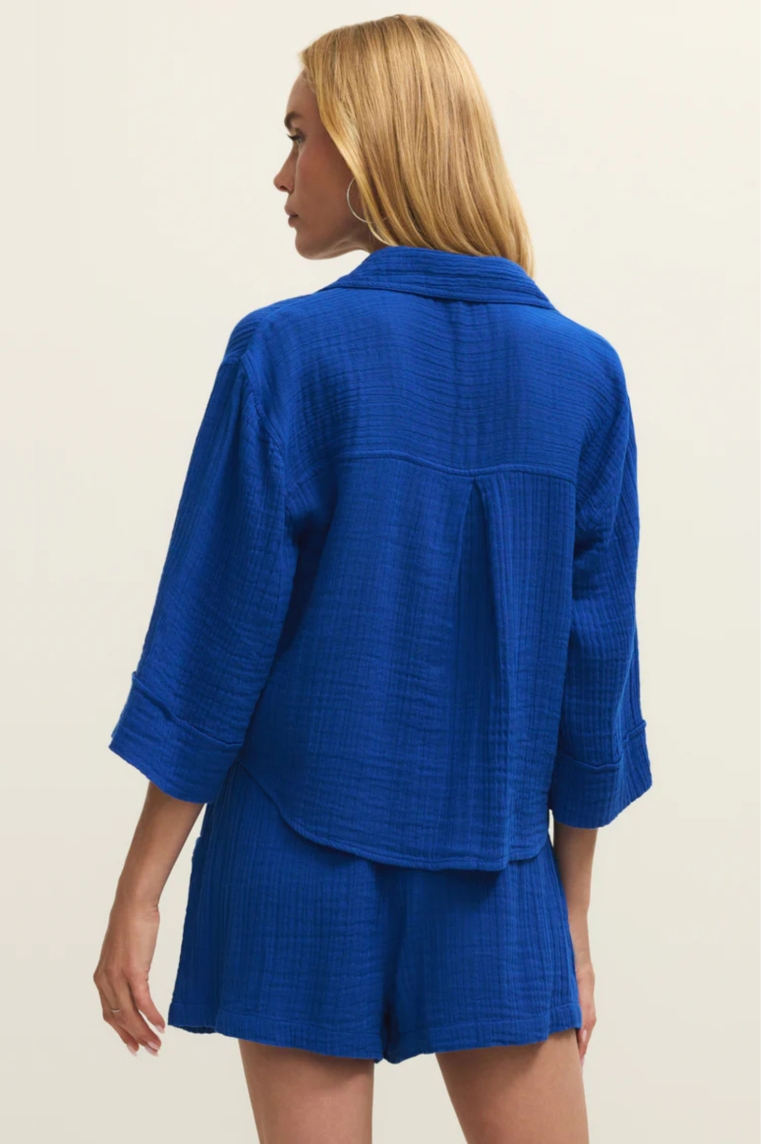 • The Helena Shirt is a lightweight top that moves with you. The textured feel, button front, and relaxed three-quarter-length sleeves create an effortless, cool look. For the perfect matching set pair with the Emory Short.