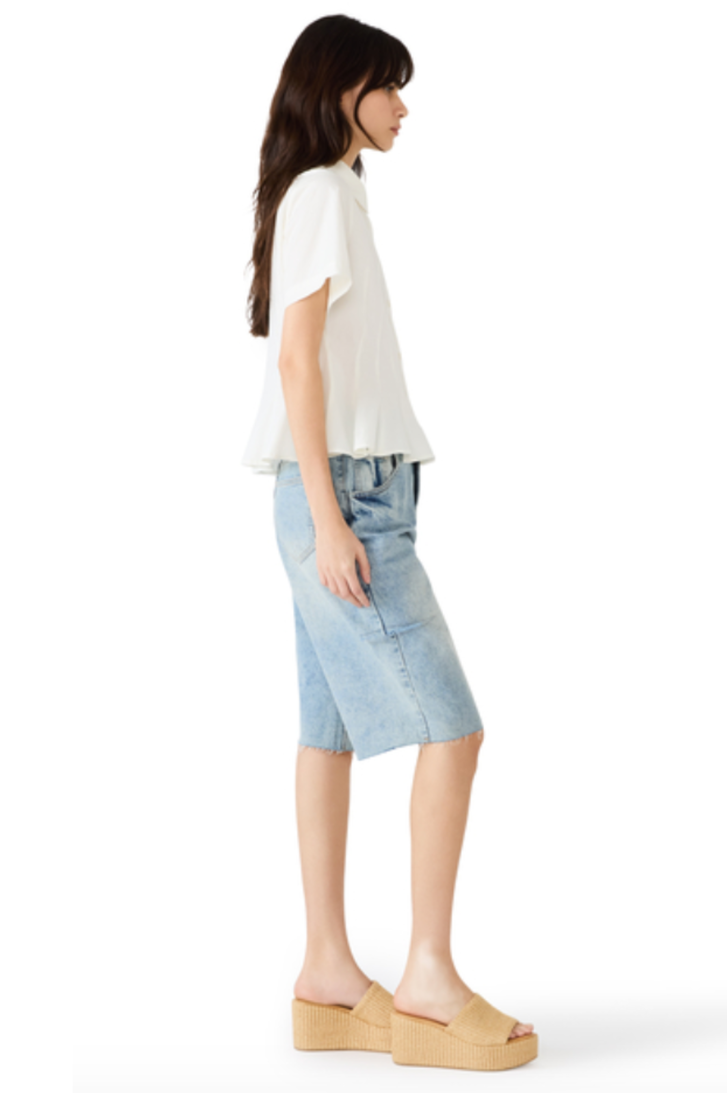 • The Porter Top is our favorite way to do "polished" without the stiff collar energy. It features a crisp, structured button-down front paired with a soft peplum hem that hits at just the right spot to flatter every silhouette.